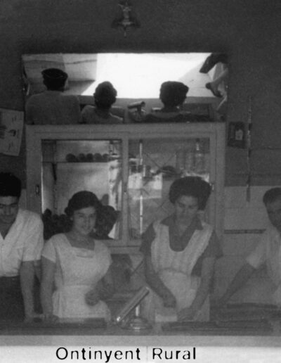 Les jornades de treball eren esgotadores. Res que no saberen de bell antuvi, car ja feia massa temps que es dedicaven a aquell negoci com per a sorprendre’s de segons quines coses. Pascual elaborava els gelats que després venia Adelina darrere del taulell. Un dia rere l’altre fins a completar la temporada d’estiu. En acabant, al ple de l’hivern, tancaven l’obrador, però no la botiga. Perquè en aquell temps de gelats només se’n venien durant els mesos de calor. Així que, en arribar el mes de setembre, deixaven d’elaborar i vendre el producte principal de l’establiment. Això sí, Adelina continuava atenent la geladeria que, per un temps, es convertia en una mena de quiosc on es venien llepolies, revistes, papes i pastes de les que s’elaboraven als obradors de la pastisseria Mora, d’Ontinyent, i també a la de Soler, d’Albaida. Pascual, per la seua banda, deslliurat de la feina de fer gelats, se n’anava a treballar a jornal. Jo agarrava la moto i me n’anava a Ibi a descimalar o a arreplegar olives. Recorde que feia tant de fred que m’havia de posar una bossa de xupa-xups a cada mà i dos bosses de plàstic més als peus. Aixina i tot, en arribar a la “Venta del Borrego”, havia de parar. Alguna vegada, fins i tot, vaig plorar. Perquè allò era insuportable.