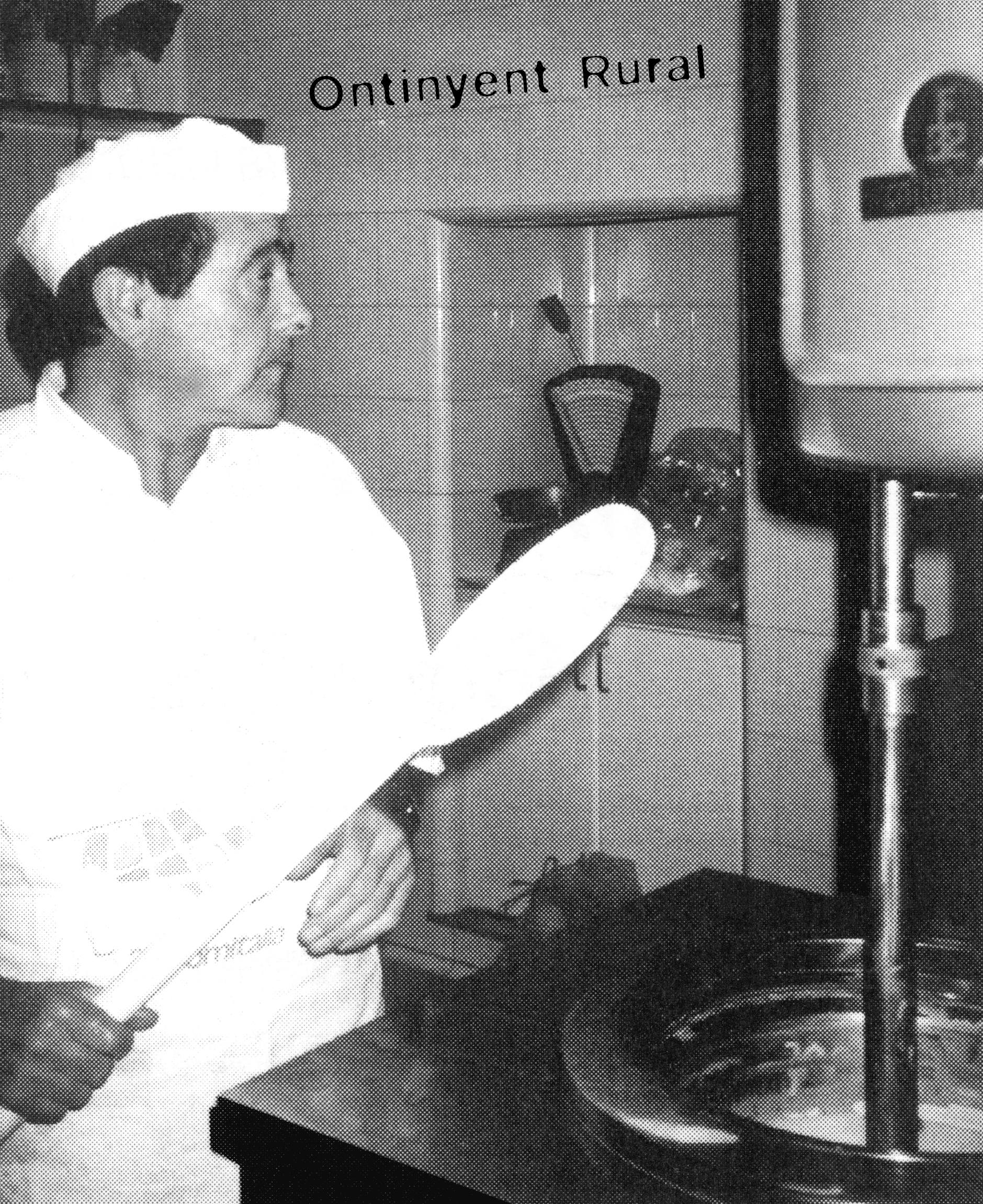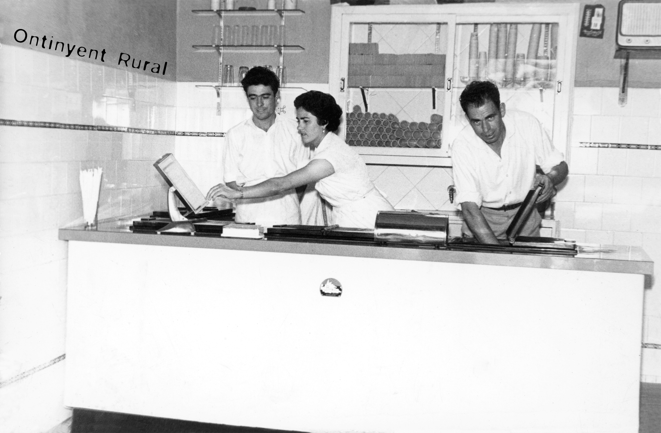 Les jornades de treball eren esgotadores. Res que no saberen de bell antuvi, car ja feia massa temps que es dedicaven a aquell negoci com per a sorprendre’s de segons quines coses. Pascual elaborava els gelats que després venia Adelina darrere del taulell. Un dia rere l’altre fins a completar la temporada d’estiu. En acabant, al ple de l’hivern, tancaven l’obrador, però no la botiga. Perquè en aquell temps de gelats només se’n venien durant els mesos de calor. Així que, en arribar el mes de setembre, deixaven d’elaborar i vendre el producte principal de l’establiment. Això sí, Adelina continuava atenent la geladeria que, per un temps, es convertia en una mena de quiosc on es venien llepolies, revistes, papes i pastes de les que s’elaboraven als obradors de la pastisseria Mora, d’Ontinyent, i també a la de Soler, d’Albaida. Pascual, per la seua banda, deslliurat de la feina de fer gelats, se n’anava a treballar a jornal. Jo agarrava la moto i me n’anava a Ibi a descimalar o a arreplegar olives. Recorde que feia tant de fred que m’havia de posar una bossa de xupa-xups a cada mà i dos bosses de plàstic més als peus. Aixina i tot, en arribar a la “Venta del Borrego”, havia de parar. Alguna vegada, fins i tot, vaig plorar. Perquè allò era insuportable.
